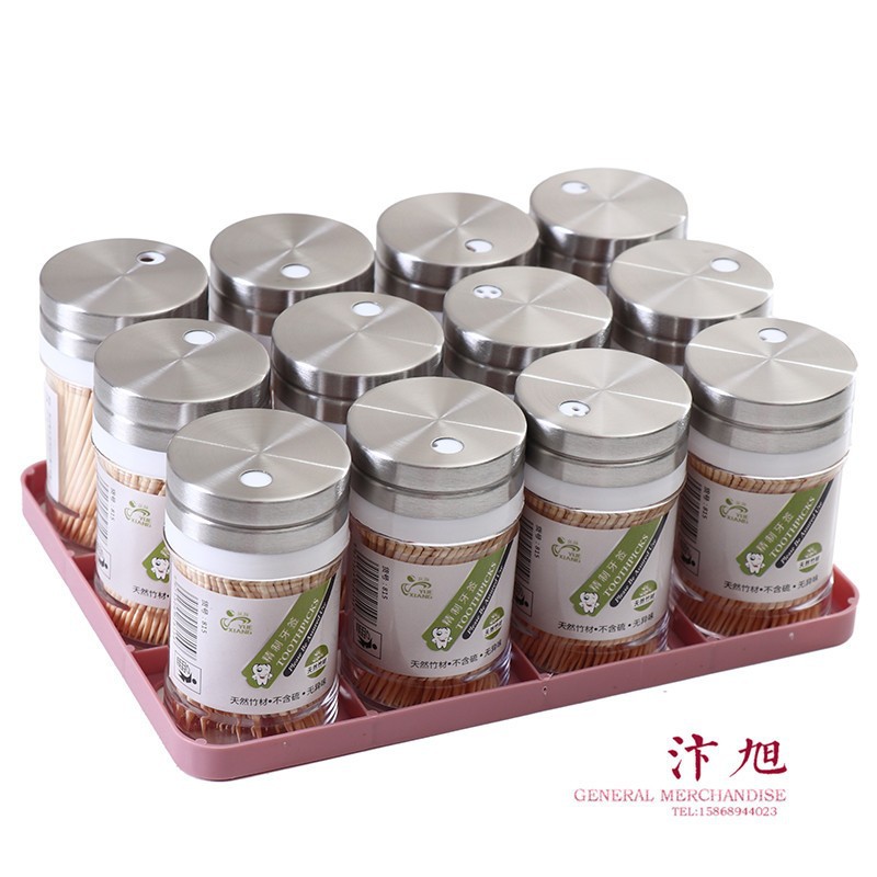 さびた鋼の蓋の箱入りの竹のつまようじのダブルヘッドの家庭用の細い歯の線のホテルは竹のつまようじの使い捨てのつまようじで卸売りします。