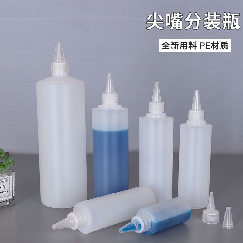 Peプラスチック尖口瓶100/500ml液体染料調色密封分注瓶滴糊半透明白尖瓶