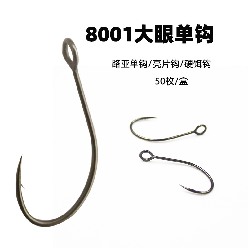 8001路亜フックの大きい目のフックの細い条のスパンコールのフックの渓流は穴の馬の口のシングルフックの白い条の首を長くしてイクラのフックを持ちます。