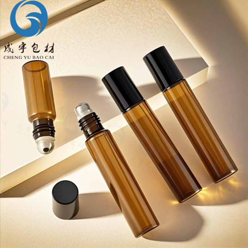 スポットブラウンガラスローラーボールボトル5ml遮光ローラーボールエッセンスオイルボトル10mlサンプル包装化粧品袋