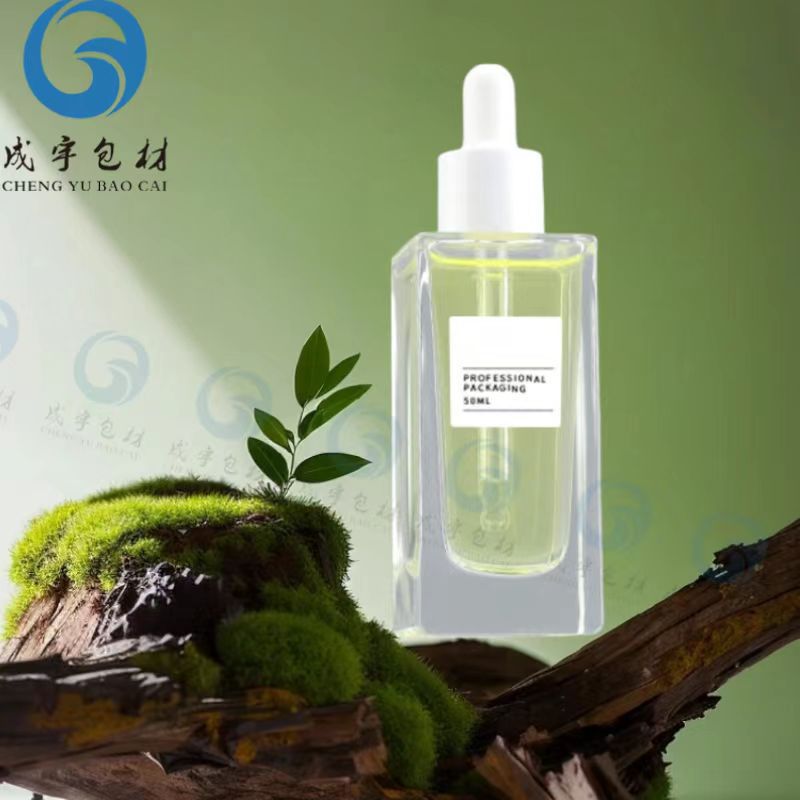 スポット50ml厚底美容液空ボトルフラワーキャップエッセンススポイトボトル四角ガラス香水詰め替えボトル
