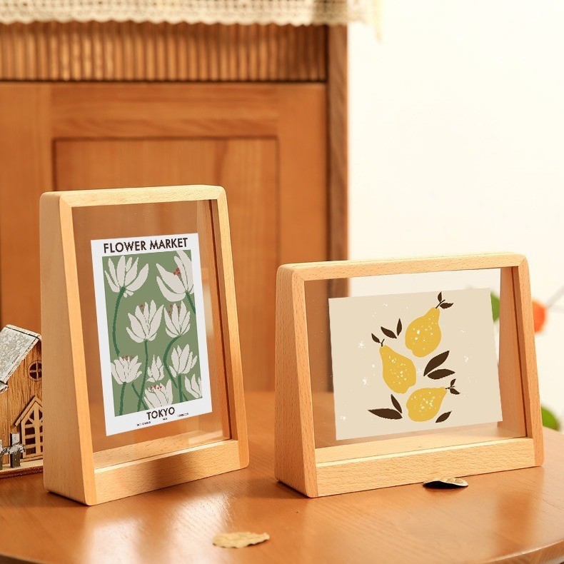 ブナ材の台形フォトフレーム、卓上立体中空フォトフレーム、モダンでシンプルな無垢材の結婚写真フレーム