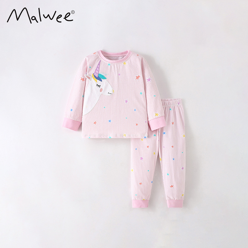 クロスボーダー malwee ガールズスーツ秋冬新作ホーム服 Tシャツウエストゴムパンツかわいいプリント 2 点セット