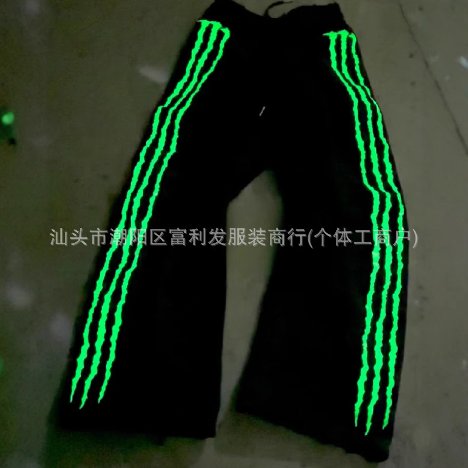 ファッションのゆったりとしたスポーツのズボンのクロスボーダーの外国貿易の春と秋の新型の蛍光の緑のストライプの百合のカジュアルなズボンの男女