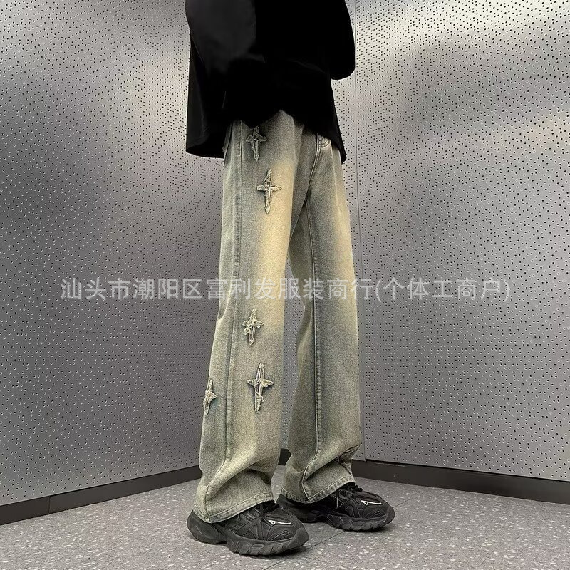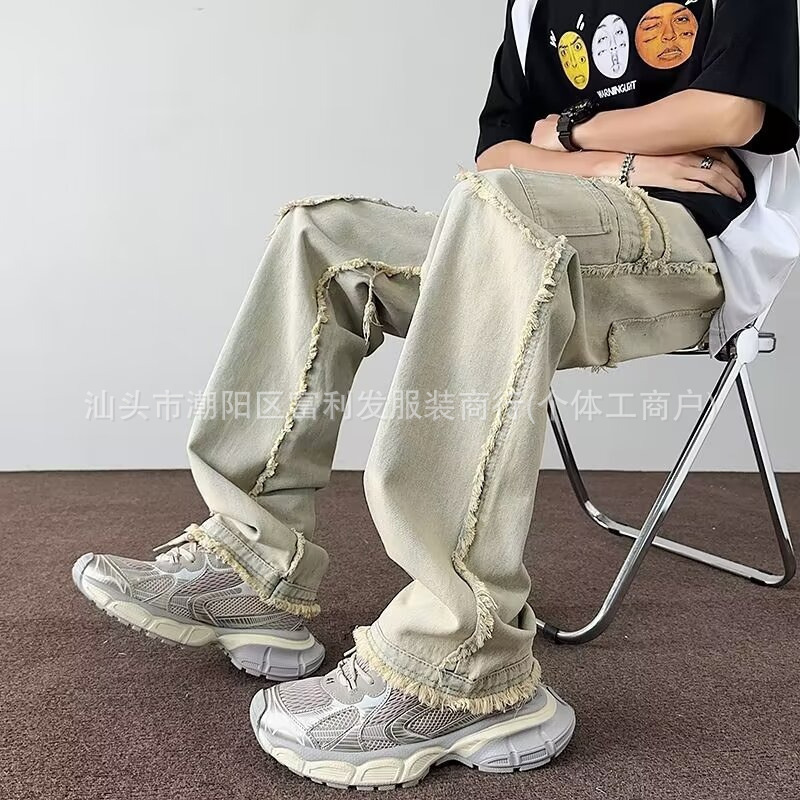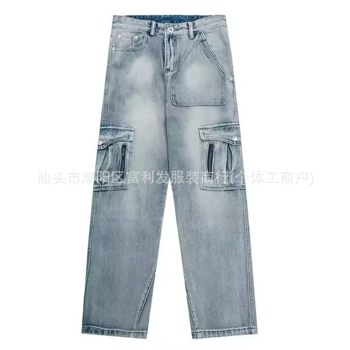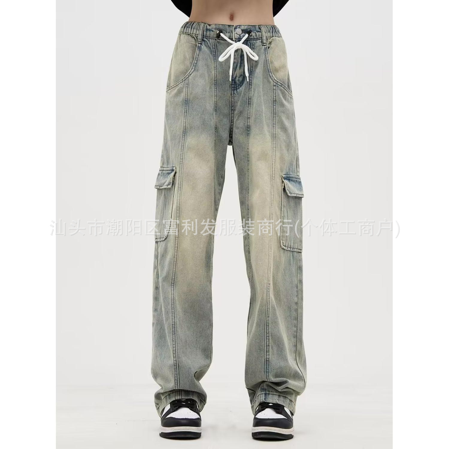 男性新春夏2024香港風新ジーンズアメリカ復古工装ゆるいストレート脚長ズボン