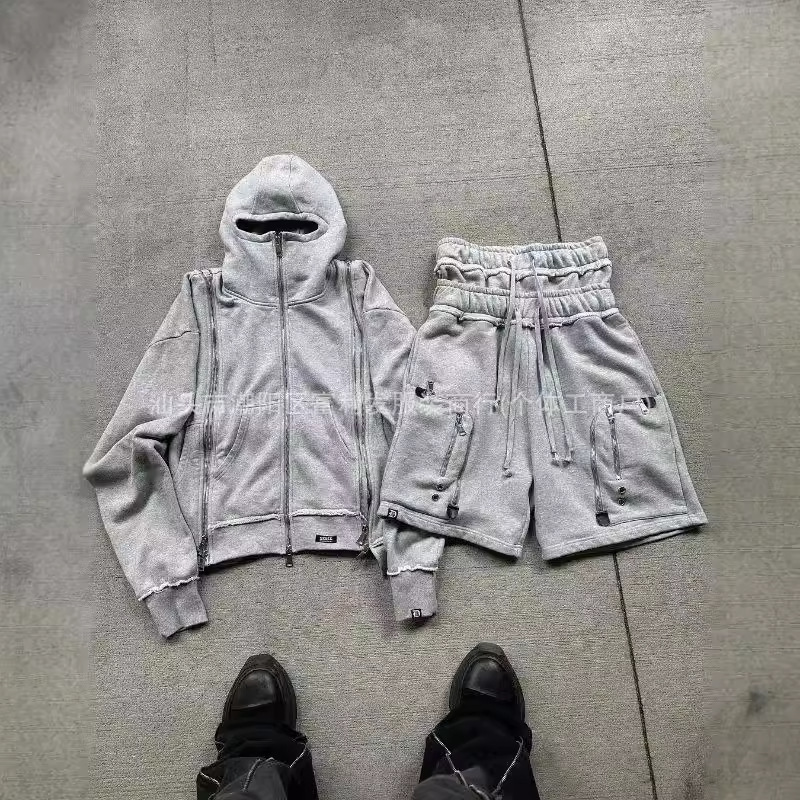 アメリカの高街レジャースーツと帽子のガードルはジッパーのズボンのズボンのショートパンツのスポーツスーツをつなぎ合わせます。