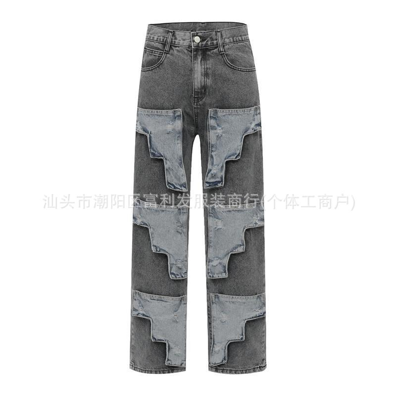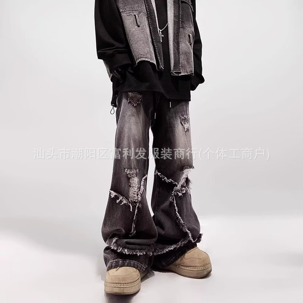 国境を越えて欧米の対外貿易oversize街頭の暗黒ゴシック風水洗い布破穴ジーンズ男潮を供給する