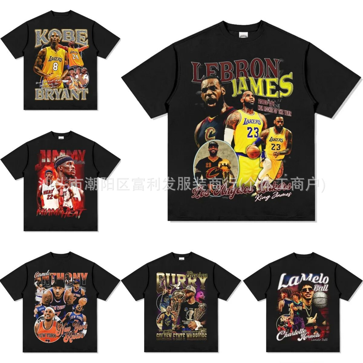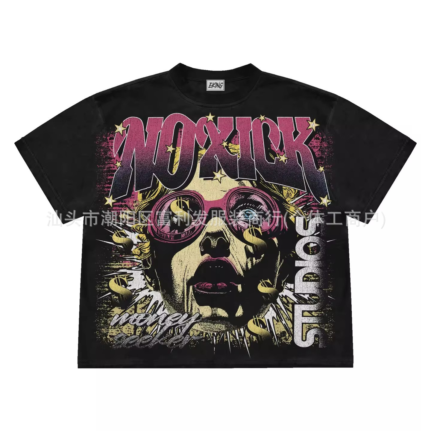アメリカンカジュアルデザイン高級越境電商男女同モデル街頭服飾印刷グラフィック綿ショートtシャツ
