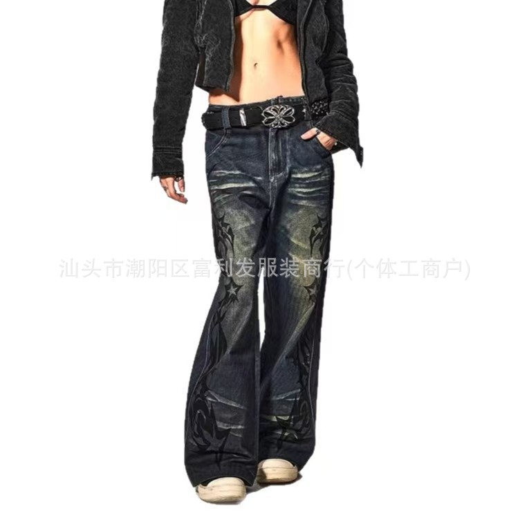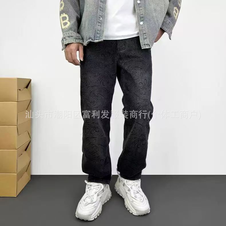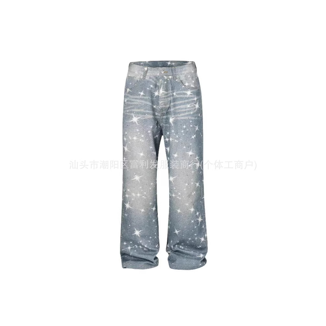 クロスボーダー直販トレンディなヨーロッパとアメリカンスタイルのメンズファッショナブルなホットダイヤモンドウォッシュカジュアルストレートワイドレッグパンツアメリカンジーンズ