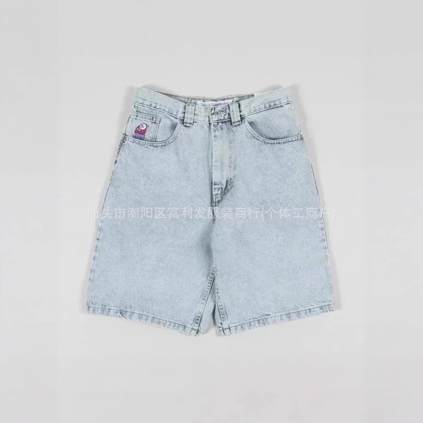 2025 夏の新アメリカンウォッシュパーソナライズプリントデニムショートパンツハイストリートルーズカジュアルストレートワイドレッグパンツ