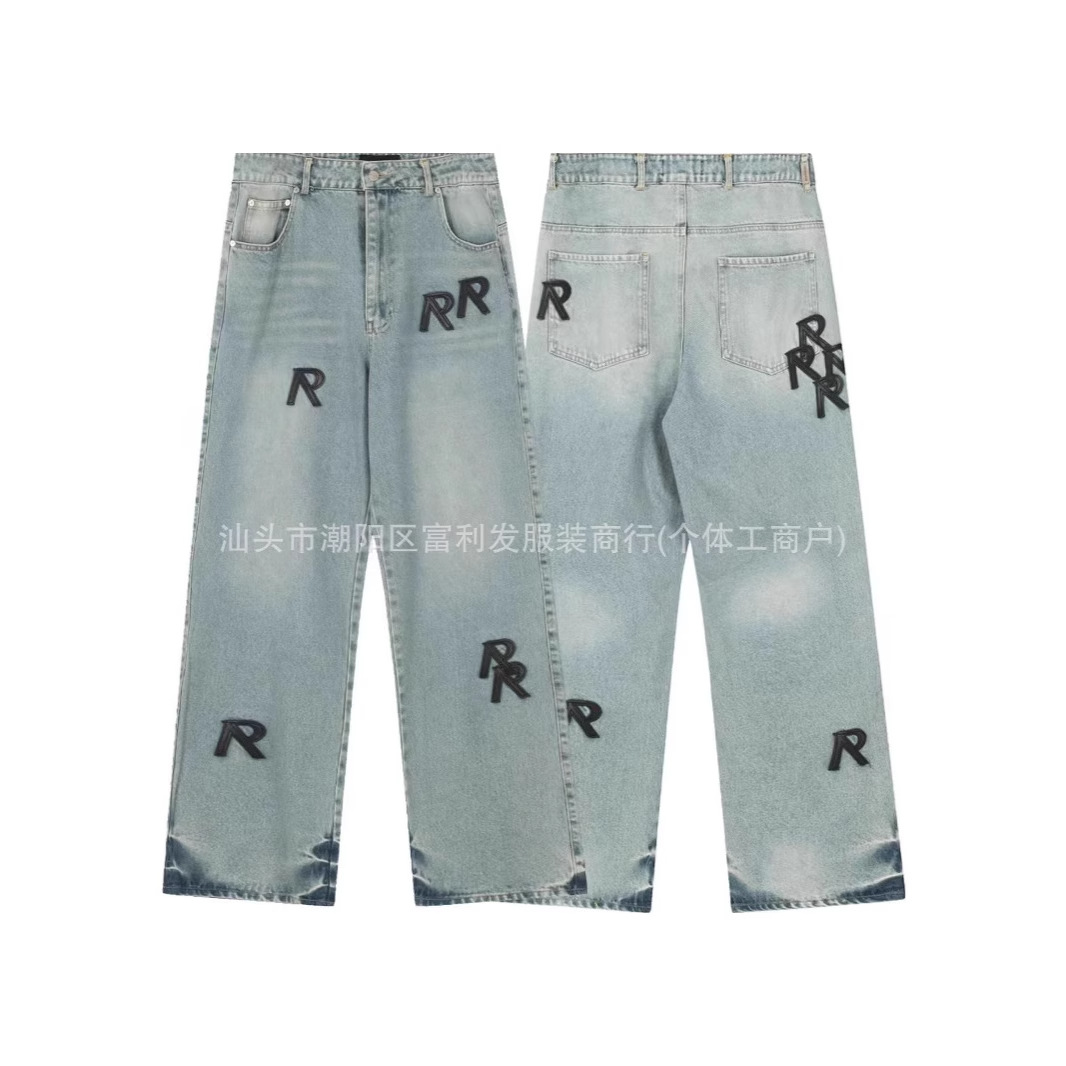 2025 夏の新香港スタイルパーソナライズされたレタープリントストレートジーンズメンズ春アメリカンドレープカジュアルパンツ