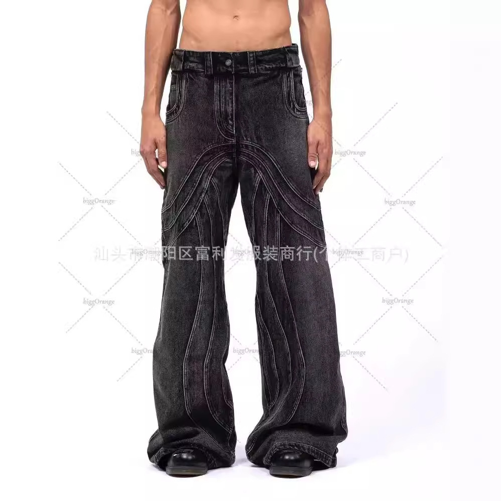 国境を越えたメーカーがアメリカのレトロな刺繍を販売しているヒップホップ街の広い足の高いジーンズがカジュアルになっている