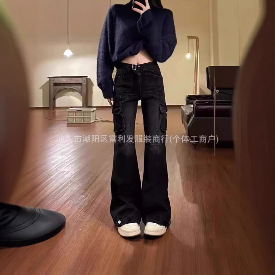 2024新型は古い洗水黒灰色のマイクロスピーカーを作って、重い重さの波の波紋のカウボーイのゆるいズボンを重んじる