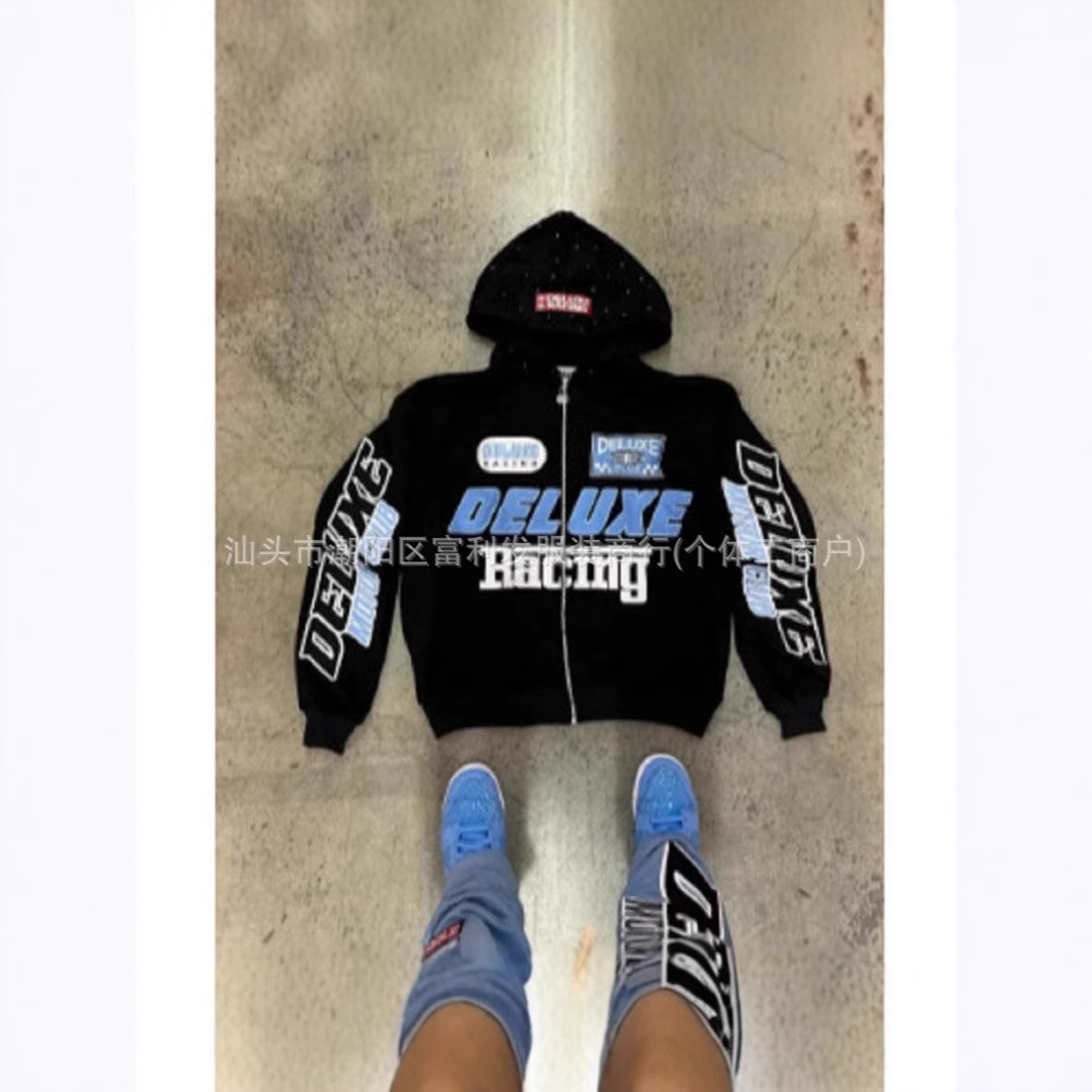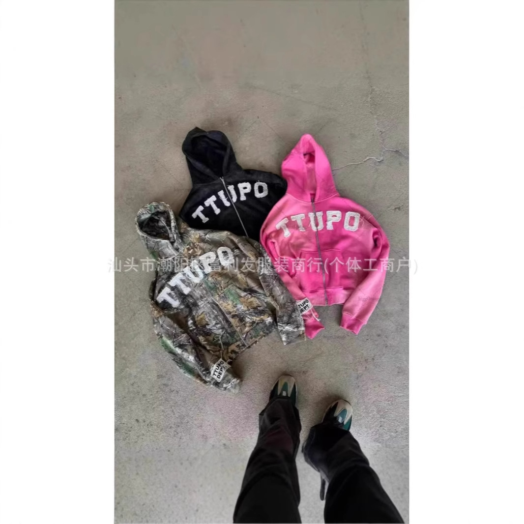 2024新型アメリカ式レトロ水洗い長袖フード付きカーディガンの個性的なアルファベットのプリントファッションのゆるいコート