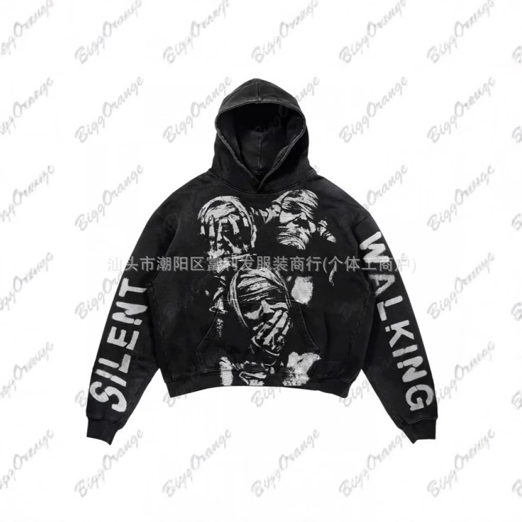 アルファベットのゴシックプリントが国境を越えた新しい狂気のフード付きシャツy2kカップルのアメリカの街頭上着とフード付き服