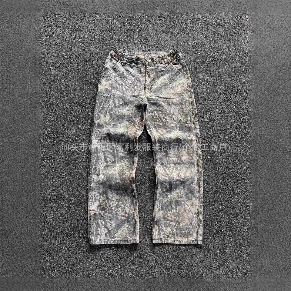 海外メーカー直販アメリカのレトロな水洗い迷彩カジュアルパンツがゆったりしています。