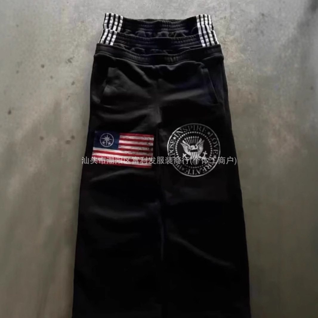国境を越えたメーカー直販アメリカのレトロな水洗い個性的なトレンドプリントのゆるいカジュアルパンツ夏の新しいズボン