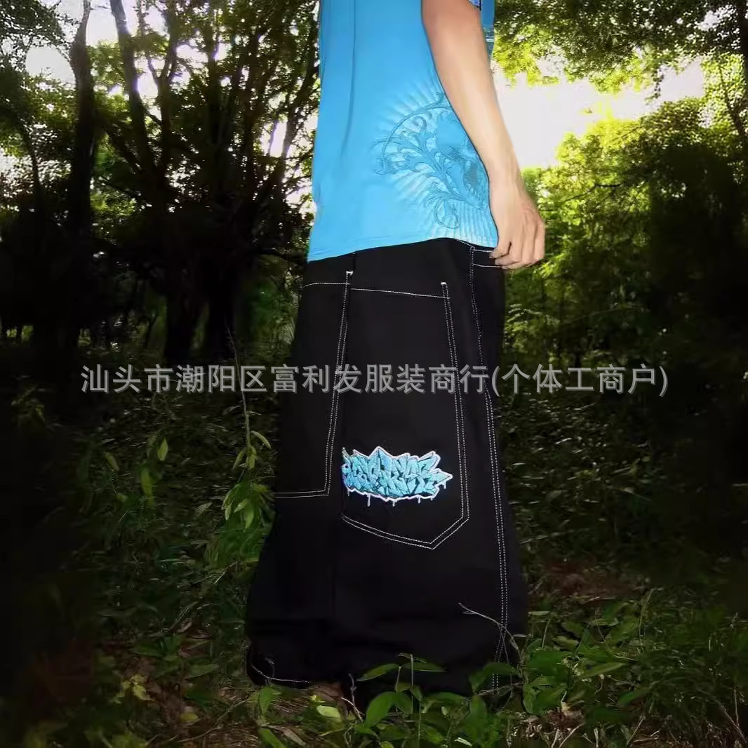 国境を越えたアマゾン欧米の高街模様刺繍ジーンズhiphopヒップホップゆるい広脚カウボーイズボン