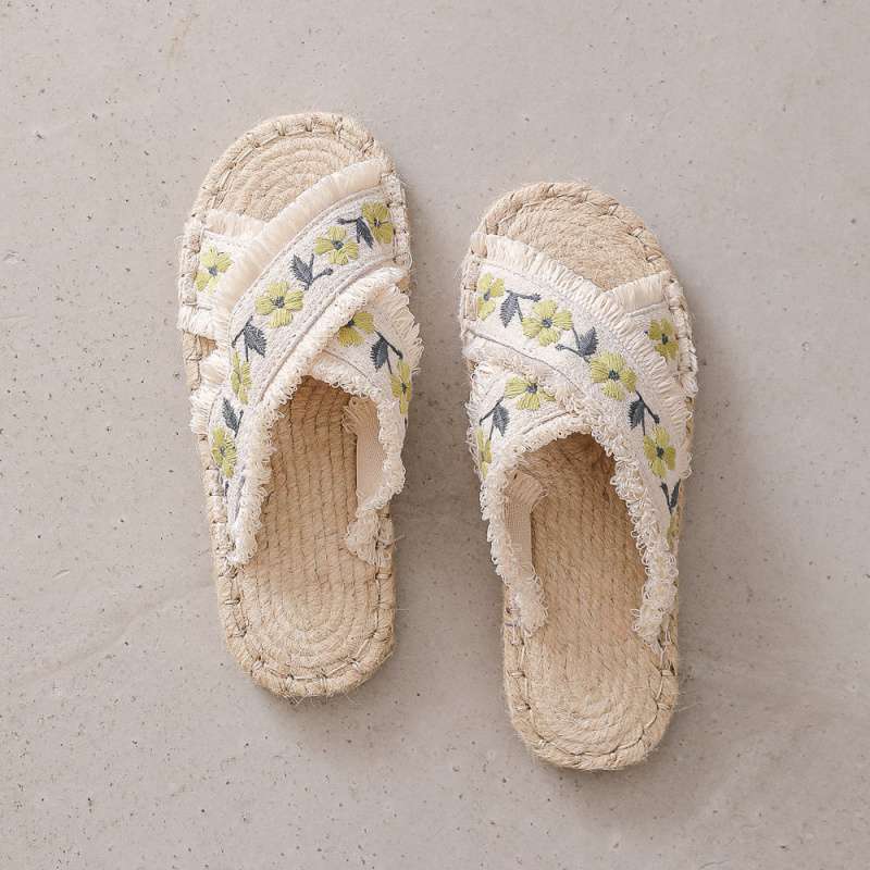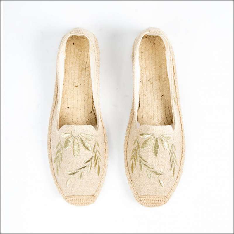 2025 夏古い北京布靴エスニックスタイルリネンフラット刺繍女性のスリッパ外着用織り漁師サンダル