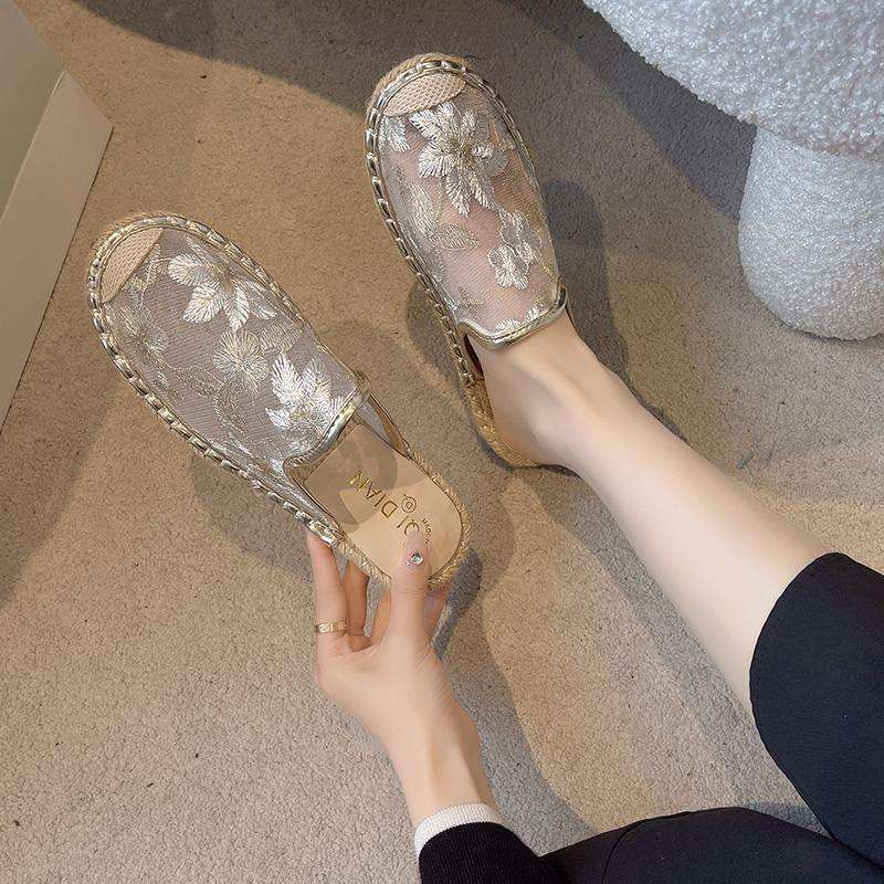 原宿スタイル織り漁師靴包頭靴女性 2025 新しいエスパドリーユスリッパ女性の夏のファッションカジュアルシューズアウターウェア