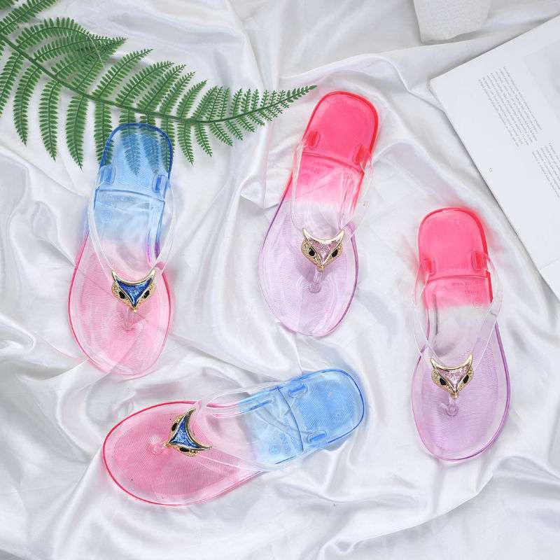 女性用ビーチサンダル夏透明クリスタル学生ファッション韓国スタイルのアウターウェア滑り止めと防臭ビーチサンダル女性用
