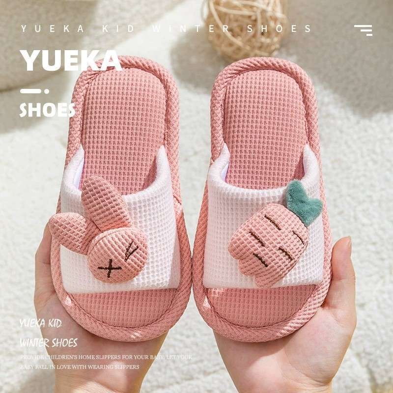 子供スリッパリネン屋内幼稚園女の子春と秋子供親子ベビー男の子床滑り止めホームシューズ