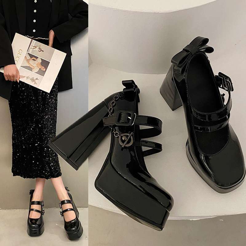 レトロメリージェーンレザーシューズ女性のための夏 2025 新しいロリータハイヒール厚いヒール日本製 jk 黒シングルシューズ