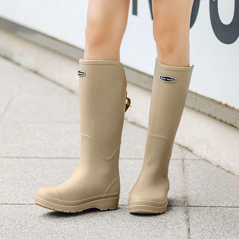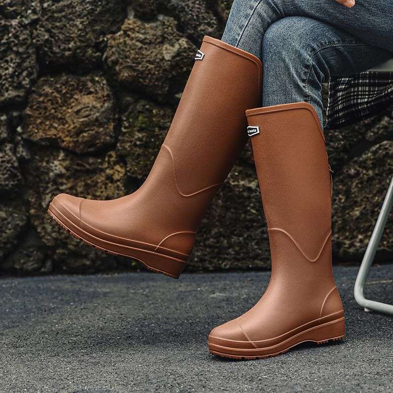 新しいハイチューブファッションレインブーツアウトドアカップルノンスリップ防水ロングチューブレインブーツ女性のキッチンウォーターシューズ耐摩耗性ゴム靴