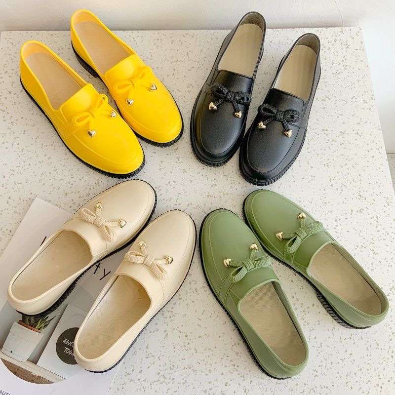 2025 新包頭英国シングルシューズレインシューズ快適な防水ロートップレトロソフトソール花スタイル日本女性の靴