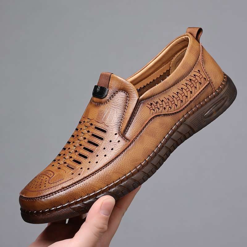 新しい夏のサンダル男性通気性カジュアル織り中空レザーサンダル男性穴牛腱底ソフトソールの靴