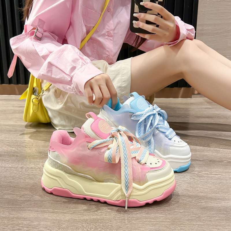 ヨーロッパ厚底通気性メッシュカラーブロックダッドシューズ2025夏プラットフォームソール多用途カジュアルスポーツシューズ
