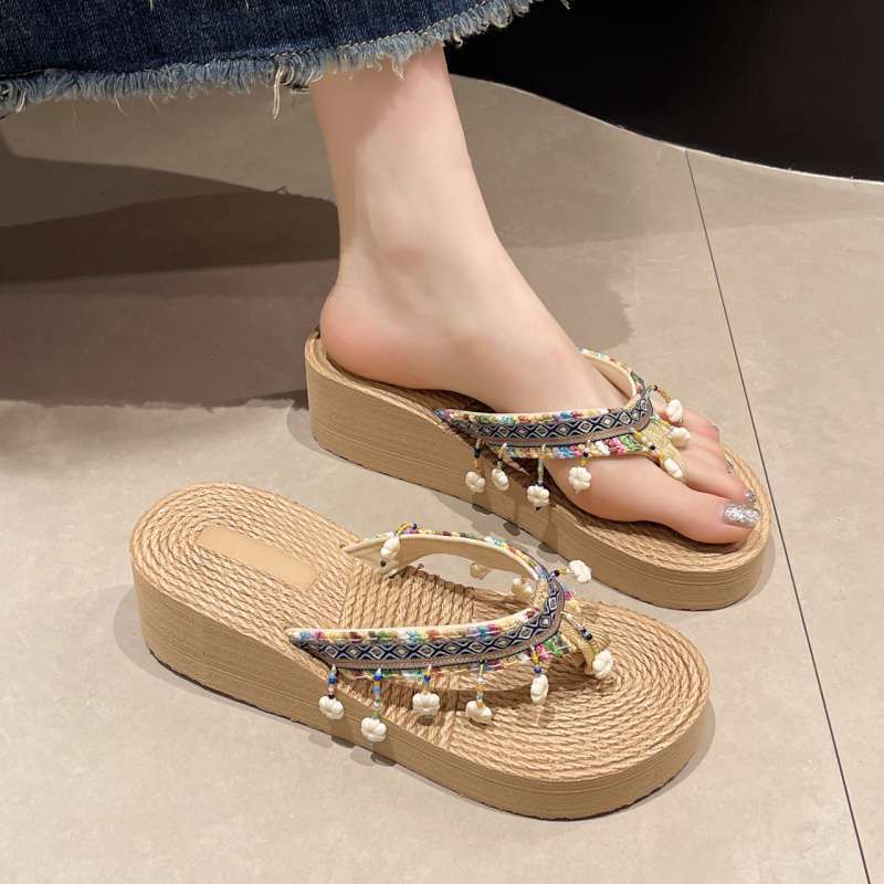 西双版納夏 2025 新しいスリッパ厚底女性の民族風海辺の休暇ビーチサンダル