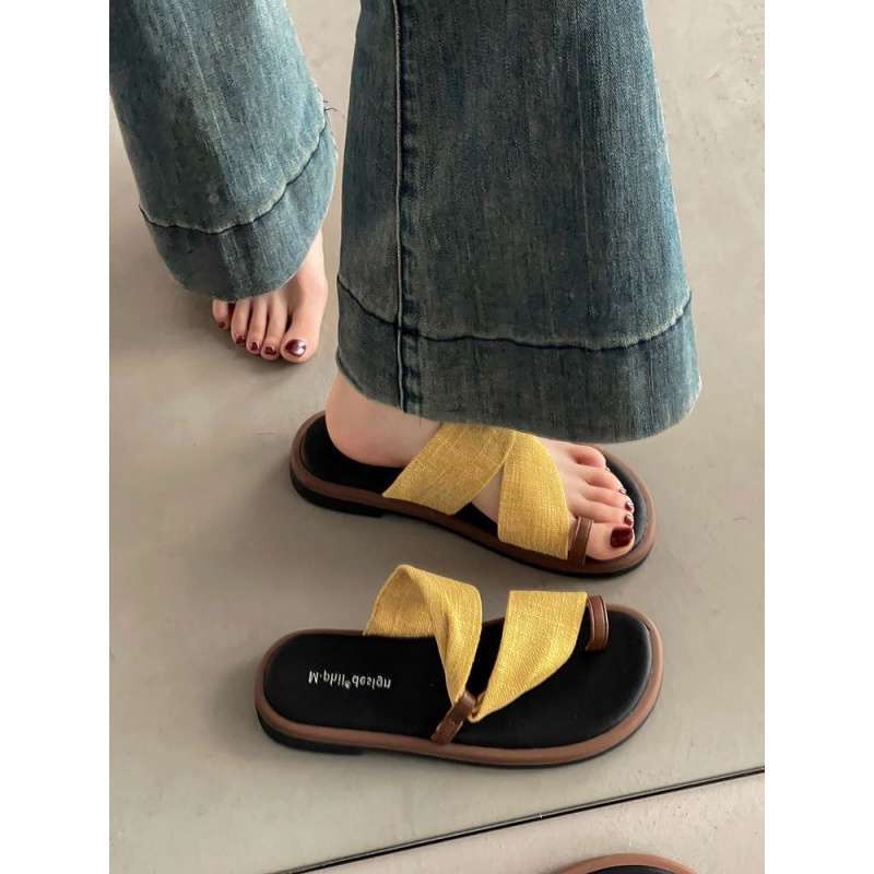 ins 西双版納模造織りリネンスリッパ女性の夏の新しいタイ旅行休暇スタイルビーチヘリンボーンサンダル