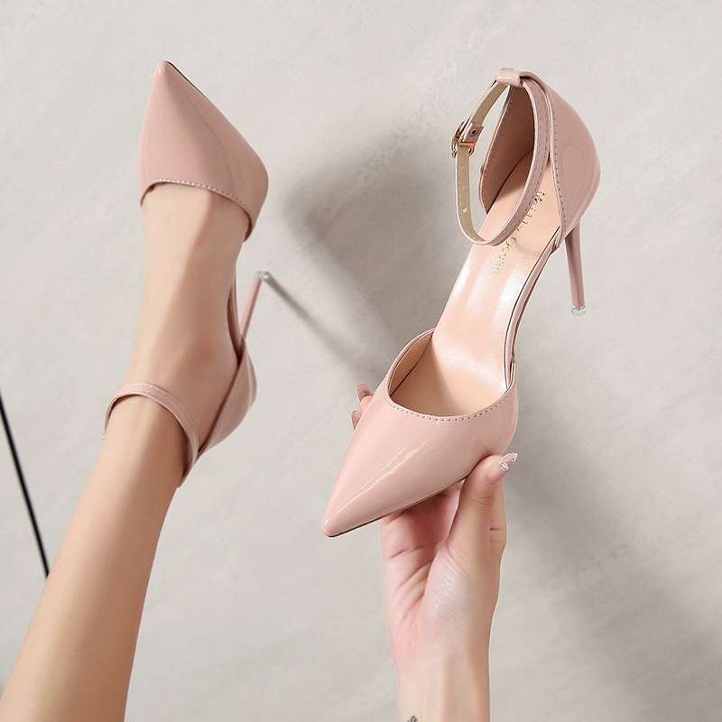 2025 春夏の新スタイルの女性用ポインテッドトゥハイヒール、女性用スティレットサンダル、女性用包頭中空ワンラインバックルシューズ、女性用リボン