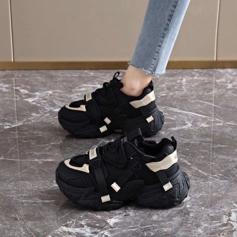 2025年新作ブラックゴールドダッドシューズレディースイン厚底増加滑り止めスポーツシューズファッショナブルで多用途で足を小さく見せます