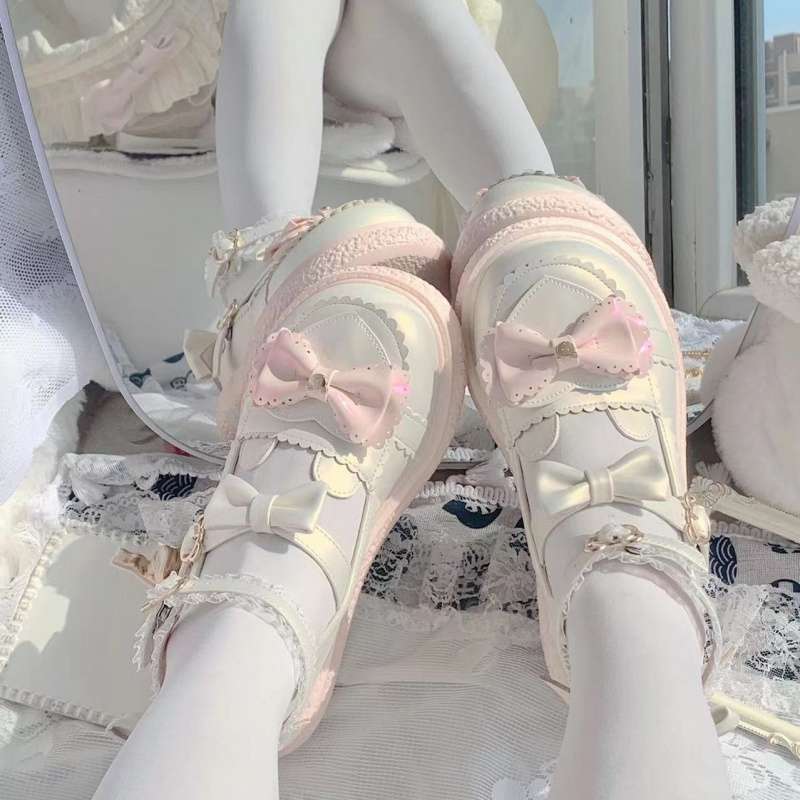 クリームソフトソール甘くて可愛いロリータシューズラウンドトゥロリータシューズ日本人学生JKスカート付き小さな革靴