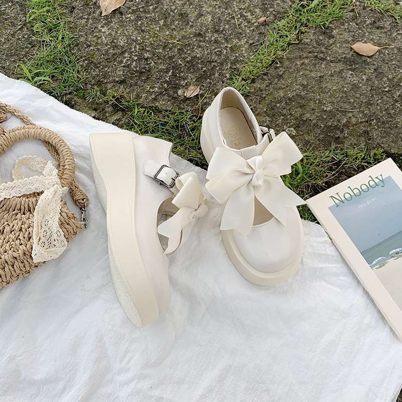厚底日本のかわいいリボンメリージェーンレザーシューズ女性 JK スカート付き春の新作多用途学生靴夏