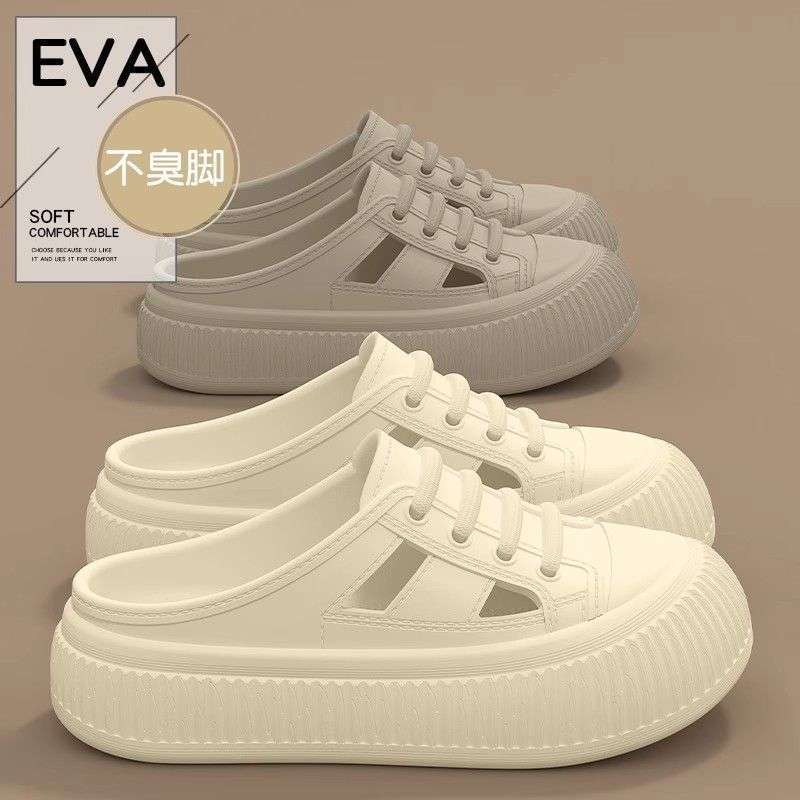 ハーフスリップキャンバスシューズ 2025 夏オリジナル包頭アウターワンステップ厚底婦人靴かかとなしスニーカー