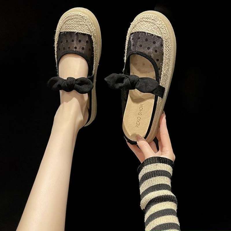 2025 新しい夏の漁師の靴中空小さな香りのレースのリボン織りスリッパ女性のためのスリッポンハーフスリッパ