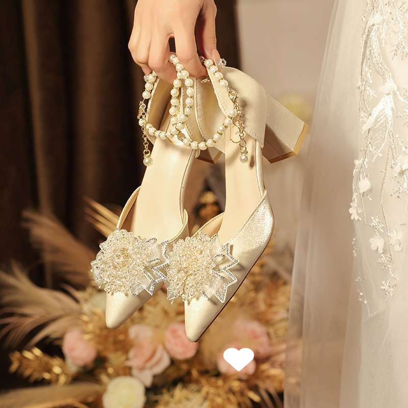 女性のための太いヒールの美しい結婚式の靴 2025 夏の新しいスタイルの結婚式の秀和服のウェディングドレス 2 着用妊婦の足が疲れにくいハイヒールの結婚式の宴会