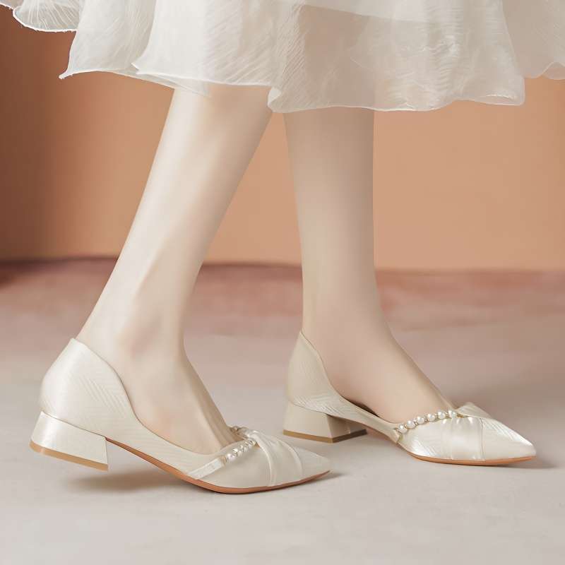 イブニングシューズ、スカート付きの優しいスタイルのミドルヒールの妖精の靴、エレガントな靴、34 フレンチスタイルの万能な小さな香りの尖ったつま先のローヒール