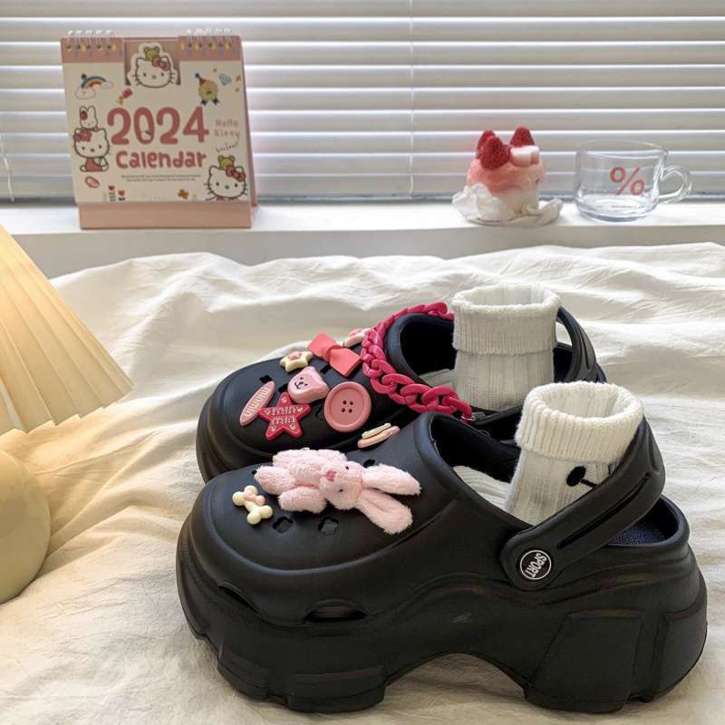 かわいい DIY 下駄女性用 2025 夏の新しい多用途滑り止め防臭アウターウェアイントレンド高さ増加厚底カジュアル
