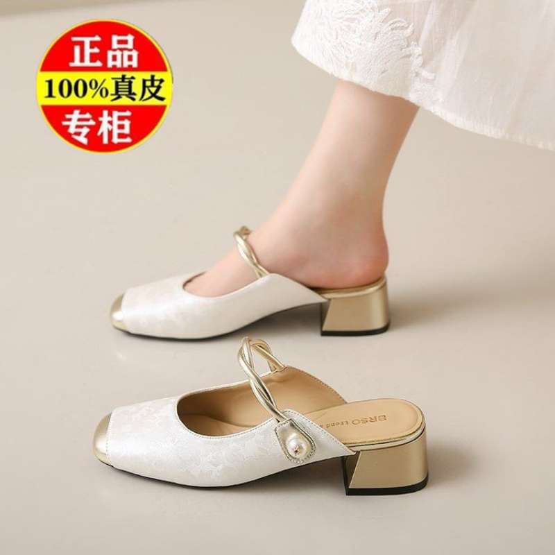 中国風の女性のハーフスリッパ夏優しい新しい中国風 2025 包頭スリッパ新しいスタイルスカート付き妖精メリージェーンクール