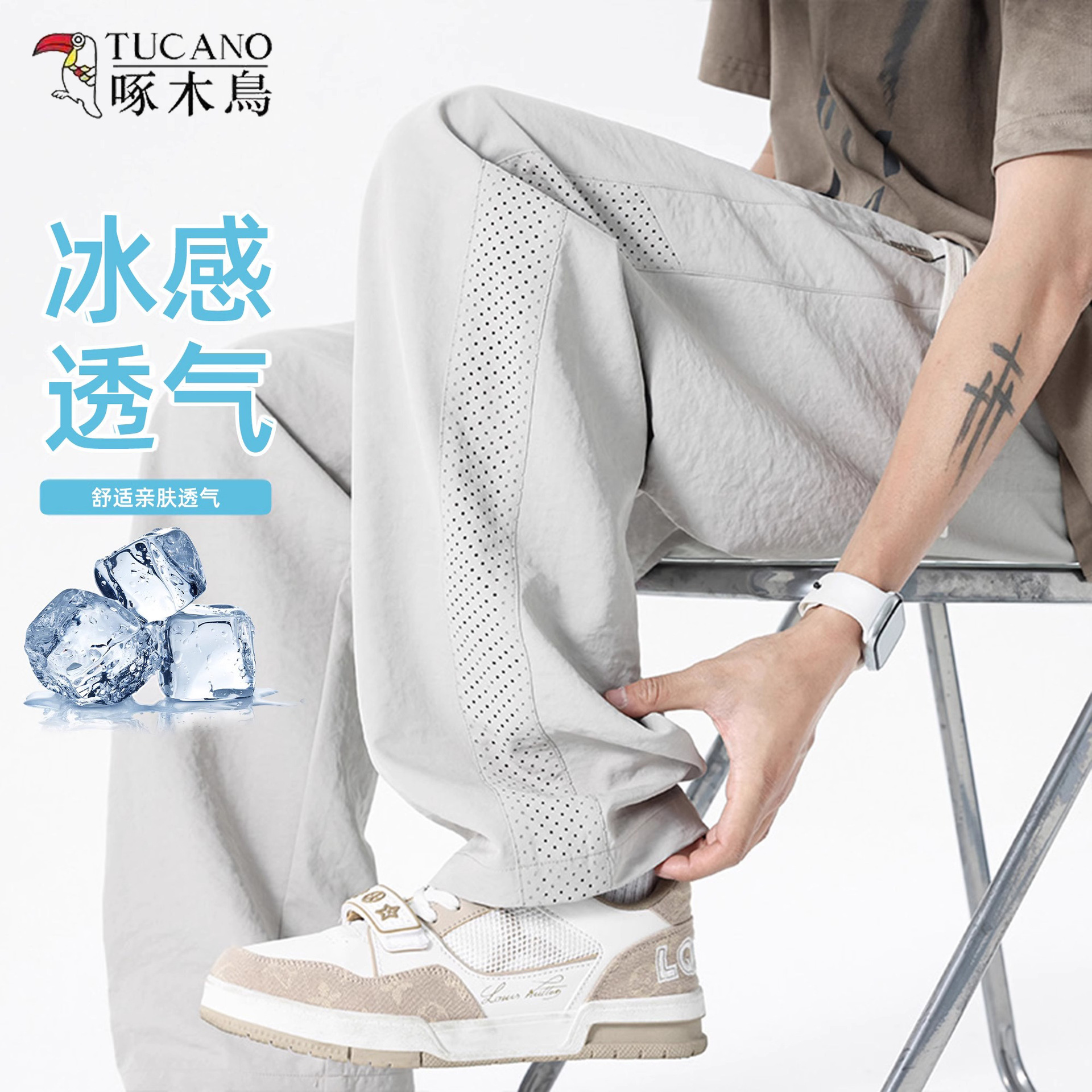 ウッドペッカーアメリカンメッシュパンツメンズ夏薄手通気性速乾スポーツパンツストレートレッグルーズトレンディカジュアルパンツ