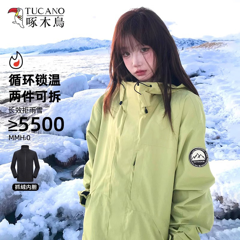 キツツキの突撃服の女性2025新型春秋三合一は内胆コートのアウトドア登山服の男性を取り外します。