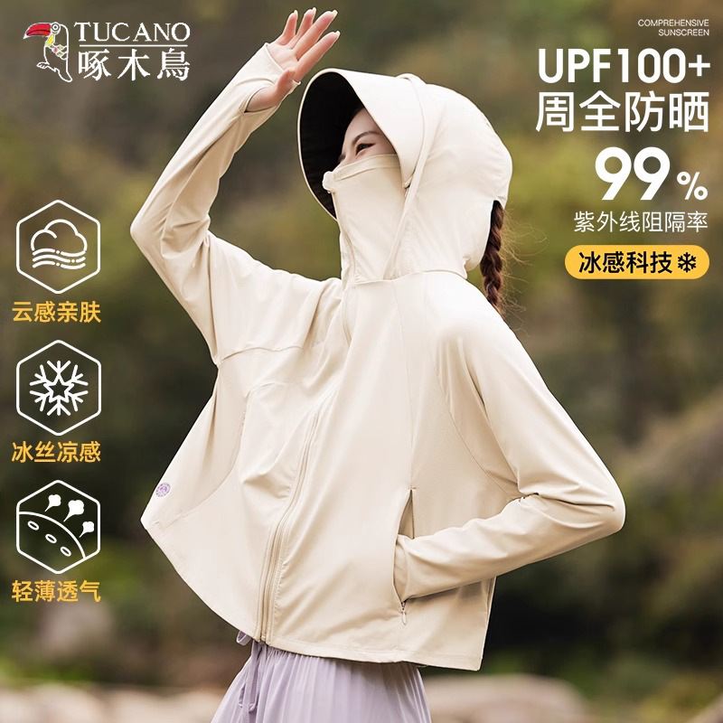 ウッドペッカーアイスシルク日焼け防止服女性のための 2025 夏の新しいスタイルの女の子通気性の薄い小さな日焼け防止服ジャケット女性のための