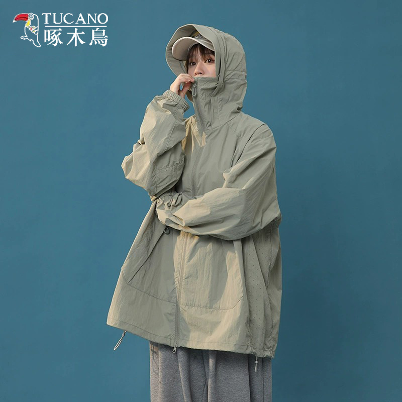 キツツキの日焼け止め服の女性2025新型紫外線防止夏の薄いタイプのアウトドア山系の通気性がゆったりしているコート