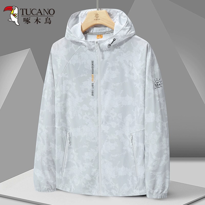キツツキ日焼け止め服男性夏2025釣り服新型修身紫外線防止日焼け止め服薄いコート
