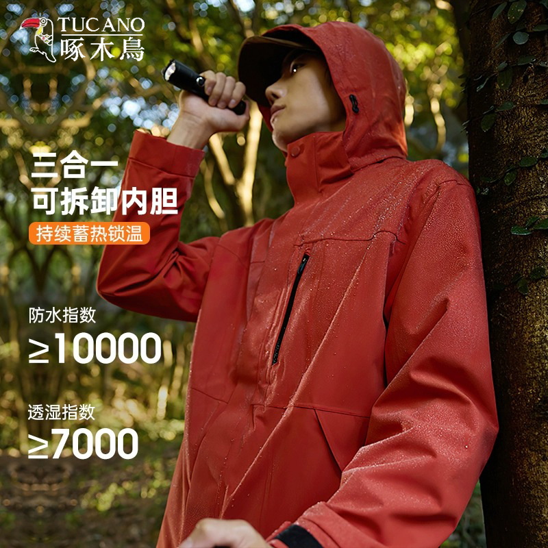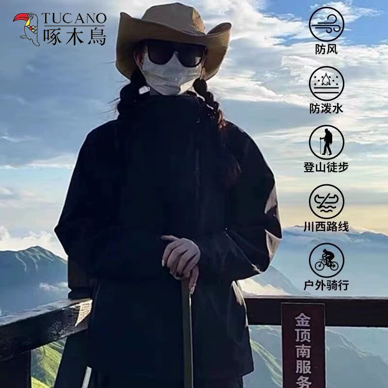 キツツキ伯同項アウトドア突撃服女性カップル金三合一防風防雨徒歩登山服コート男