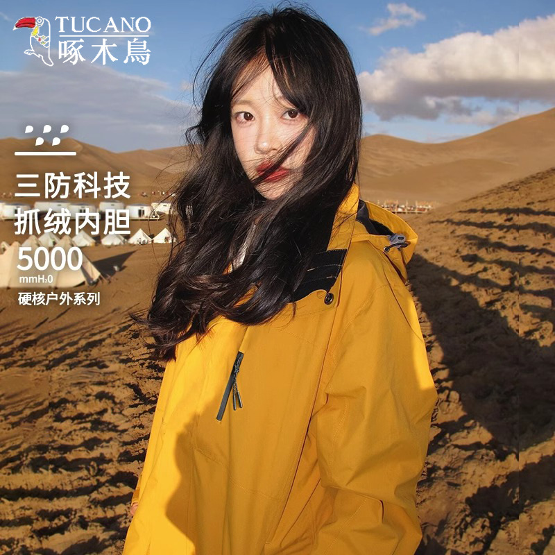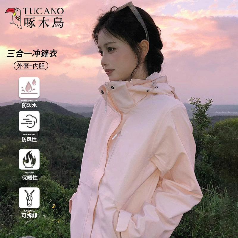 キツツキ突撃服男2025新型春秋三合一青少年防風防水登山防風コート女
